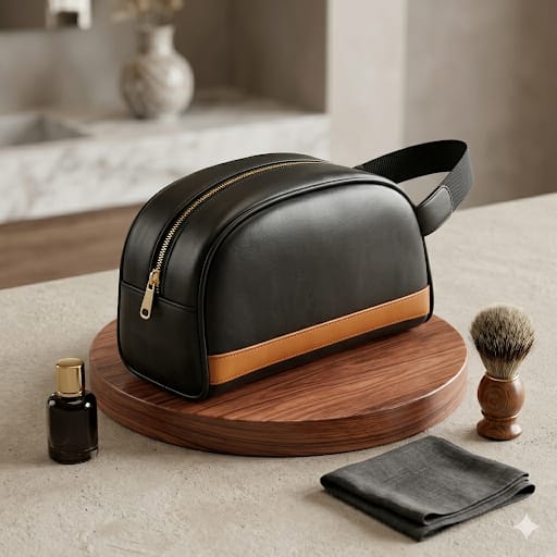 Premium Leather Travel Toiletry Bag – Black & Tan Edition