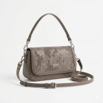 Design: A structured rectangular shoulder bag featuring a unique distressed/metallic texture on the front flap.
